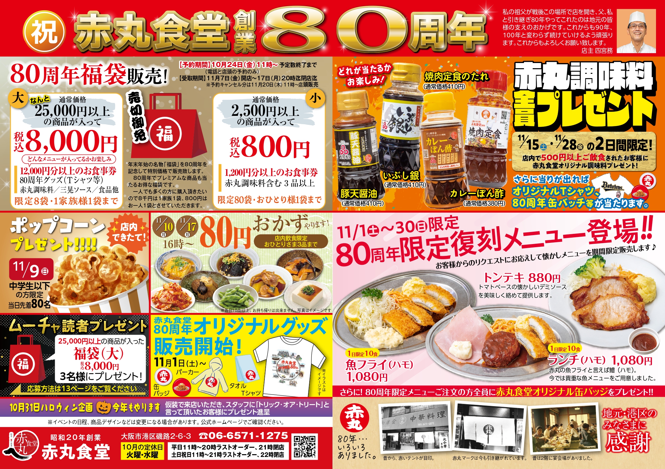 赤丸食堂 創業80周年!11月はお客様に感謝の気持ちをこめてお得な企画をたくさんご提供いたします!